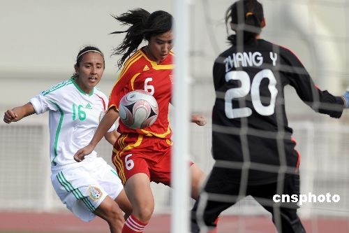 當(dāng)?shù)貢r間11月9日,備戰(zhàn)女足世界青年錦標(biāo)賽的中國青年女子足球隊在洛杉磯與墨西哥青年女足隊進行了一場熱身賽,結(jié)果兩隊踢成一比一。中新社發(fā) 張煒 攝