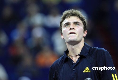 11月10日,在上海旗忠網球中心進行的上海大師杯金組單打比賽中,世界網壇名將瑞士天王費德勒苦戰(zhàn)3盤,以1比2不敵法國小將西蒙,爆出本屆大師杯開賽以來一大冷門。中新社發(fā) 湯彥俊 攝