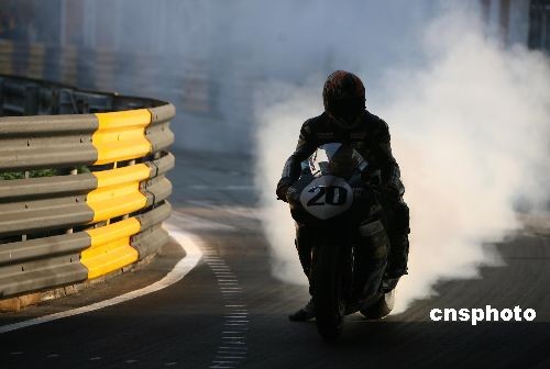 十一月十五日,英國選手伊斯頓(三號)在澳門舉行的“名門世家”第五十五屆澳門格蘭披治大賽車上奪得第四十二屆澳門格蘭披治摩托車大賽冠軍。中新社發(fā) 武仲林 攝