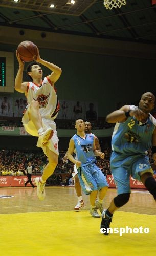 2008年11月19日,2008-2009CBA聯(lián)賽常規(guī)賽第2輪比賽在山東濟(jì)南舉行,主場作戰(zhàn)的山東黃金男籃以116-89戰(zhàn)勝北京金隅男籃。中新社發(fā) 張侃 攝