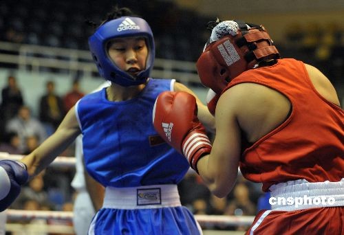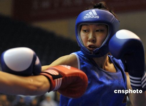 11月22日下午,2008世界女子拳擊錦標(biāo)賽在寧波體育中心雅戈?duì)栿w育館拉開戰(zhàn)幕,中國隊(duì)的李思源在與美國的比賽中,戰(zhàn)勝對手,取得第一場勝利。當(dāng)天共進(jìn)行了26場預(yù)賽。中新社發(fā) 李巖宏 攝