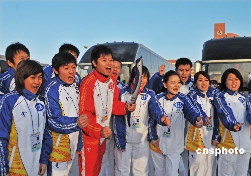 哈爾濱第24屆世界大學(xué)生冬季運(yùn)動(dòng)會(huì)火炬?zhèn)鬟f于2008年12月22日在大慶市傳遞。傳遞時(shí)間30分鐘,路程2.6公里;10時(shí)12分大慶市人民政府市長(zhǎng)夏立華致詞,冰雪使者引回圣火,熄滅圣火盆, 哈爾濱第24屆世界大學(xué)生冬季運(yùn)動(dòng)會(huì)火炬?zhèn)鬟f在黑龍江省大慶市傳遞圓滿結(jié)束。中新社發(fā) 濱海之光 攝
