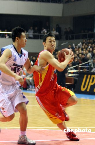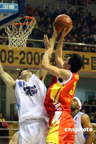 1月16日晚,北京金隅主場對陣八一雙鹿電池隊,八一隊缺少主教練阿的江的場邊指導,王治郅因傷未上場。最終北京金隅以96比81擊敗八一取得三連勝。中新社發(fā) 王韶驊 攝