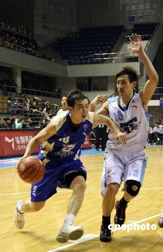 2月16日晚,CBA第35輪最后一場(chǎng)比賽中,北京金隅隊(duì)主場(chǎng)迎戰(zhàn)東莞馬可波羅隊(duì),全場(chǎng)比賽東莞隊(duì)防守松懈,外援進(jìn)攻乏力,而北京隊(duì)隊(duì)員積極主動(dòng),比分一直領(lǐng)先,最終以21分的優(yōu)勢(shì)戰(zhàn)勝對(duì)手,取得了進(jìn)軍季后賽關(guān)鍵的一場(chǎng)勝利。中新社發(fā) 王韶驊 攝