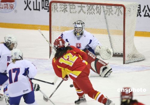 2月18日,第24屆國際大學生冬季運動會在哈爾濱冰球館拉開戰(zhàn)幕。當日大冬會女子冰球比賽將在哈爾濱冰球館進行3場比賽,首場斯洛伐克隊(白)對中國隊(紅),比賽進行到10時20分中國隊進首球。中新社發(fā) 姚庭山 攝