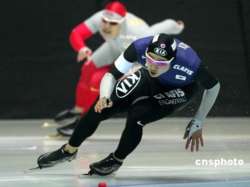2月19日,世界大學(xué)生冬季運(yùn)動(dòng)會(huì)在結(jié)束女子首金爭(zhēng)奪后,男子500米速度滑冰的比賽也產(chǎn)生了金牌。韓國(guó)選手選手李康爽以兩輪69秒82的成績(jī)問鼎冠軍,為韓國(guó)隊(duì)再添一金。中國(guó)隊(duì)賽前對(duì)金牌志在必得的于鳳桐落后0.05秒,屈居亞軍,銅牌則最終歸屬于韓國(guó)選手毛太范,成績(jī)?yōu)?0秒53。中新社發(fā) 富田 攝