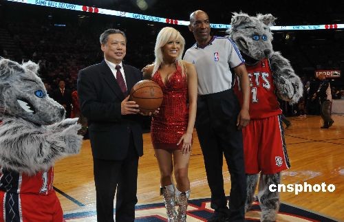 當(dāng)?shù)貢r(shí)間3月8日晚,美國(guó)大紐約地區(qū)“2009中華之夜”晚會(huì)在NBA新澤西網(wǎng)隊(duì)主場(chǎng)舉行,在NBA賽場(chǎng)吹出一陣“中國(guó)風(fēng)”,眾多美國(guó)球迷在觀看球賽之余,也飽覽了一場(chǎng)中華文化盛宴。圖為中國(guó)駐紐約總領(lǐng)事彭克玉在演出現(xiàn)場(chǎng)。中新社發(fā) 魏晞 攝