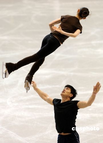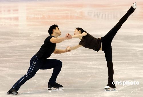 當?shù)貢r間三月二十三日下午,中國雙人滑選手張丹/張昊在洛杉磯進行賽前訓(xùn)練。二00九年世界花樣滑冰錦標賽二十四日將在洛杉磯開幕。中國名將、都靈冬奧會亞軍張丹/張昊和世錦賽冠軍龐清/佟健將向雙人滑金牌發(fā)起沖擊。中新社發(fā) 張煒 攝