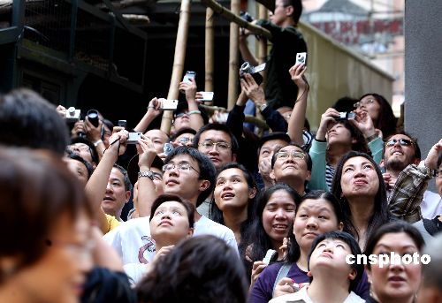 耗資十八億港元的美國好萊塢巨片《蝙蝠俠黑夜之神》十一月九日在香港中環(huán)電梯拍攝取景,男主角基斯頓比爾在拍攝中卸下太陽鏡露出真容,旁邊數(shù)百群眾演員配合演出,如人潮般的觀眾被阻隔在天橋下翹首觀看。該片一連七天在香港取景,除地面街景外,更每日派出兩架直升機(jī)在港島上空拍攝建筑及維港夜景風(fēng)貌。中新社發(fā) 王麗南 攝