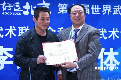 11月12日,昔日優(yōu)秀的武術運動員、如今的國際著名武打影星李連杰,被國際武術聯(lián)合會和中國武術協(xié)會任命為武術形象大使。中新社發(fā) 富田 攝