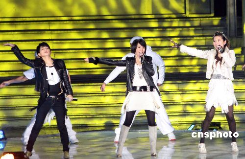 11月28日晚,臺(tái)灣知名組合S.H.E,韓國(guó)歌手安七炫放歌重慶市南川區(qū),為當(dāng)日開幕的首屆渝南黔北地區(qū)(南川)區(qū)域合作經(jīng)貿(mào)洽談會(huì)助興。中新社發(fā) 郭晉嘉 攝