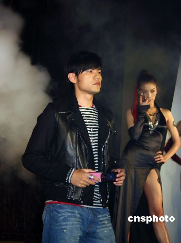 臺灣藝人周杰倫在臺北亮相,為某品牌的手機(jī)代言。中新社發(fā) 陳國華 攝