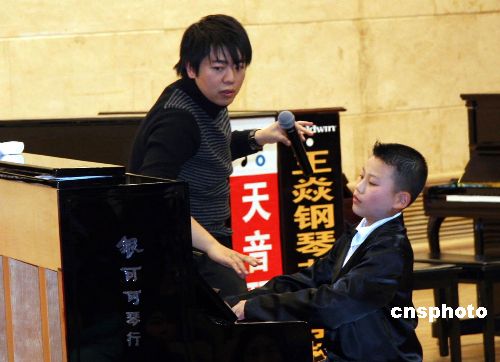 圖:青年鋼琴演奏家郎朗長沙指點(diǎn)小琴童