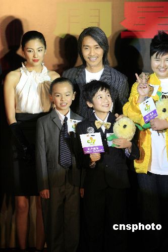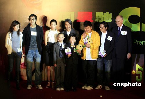 一月二十三日晚,周星馳身兼導(dǎo)演、編劇、演員,歷時(shí)三年打造的電影《長(zhǎng)江七號(hào)》在香港舉行全球首映禮,特首曾蔭權(quán)夫婦等百位政界、商界、演藝界嘉賓出席觀看,支持香港創(chuàng)意工業(yè)。中新社發(fā) 王麗南 攝