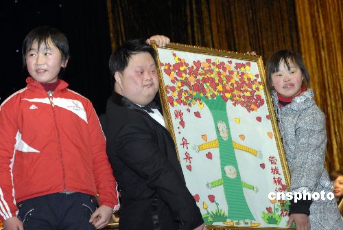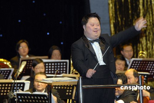 1月30日下午,“心靈之舟 情暖中原——2008安利新春慈善音樂(lè)會(huì)”在河南省人民大會(huì)堂上演。被音樂(lè)大師斯特恩譽(yù)為“創(chuàng)造藝術(shù)的指揮家”的智障青年舟舟,用手中的“魔棒”,感動(dòng)了在場(chǎng)觀(guān)眾。中新社發(fā) 向明超 攝