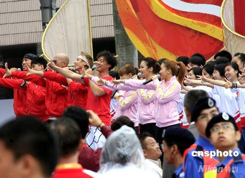 圖:香港眾星在奧運(yùn)火炬起跑地演唱造勢(shì)