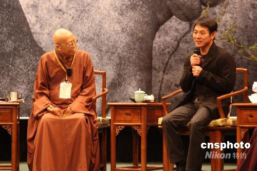 李連杰與圣嚴(yán)法師在臺(tái)北交流賑災(zāi)體會(huì)