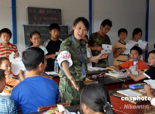 圖:災(zāi)區(qū)帳篷學(xué)校來了解放軍心理支援隊