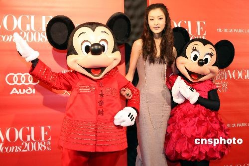 全球偶像米奇和米妮12月6日踏上了北京盛大舉行的“時尚偶像慶典活動”紅毯,成為這個星光閃耀活動中的兩位特殊來賓。米奇和米妮與中國的首席超級名模杜娟一同抵達,共同出席此次活動的還有其他500位時尚偶像,包括凱特·莫斯(Kate Moss)、杰西卡·史丹(Jessica Stam)、張曼玉(Maggie Cheung)、以及米拉·喬沃維奇(Milla Jovovich)。中新社發(fā) 楊可佳 攝