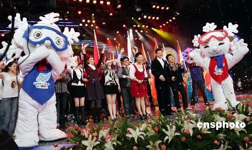 12月30日,“我們的會(huì)歌——我來(lái)唱”第24屆世界大學(xué)生冬季運(yùn)動(dòng)會(huì)會(huì)歌演唱者選拔賽在歷時(shí)一個(gè)月后圓滿落幕,當(dāng)晚,本次比賽的頒獎(jiǎng)晚會(huì)在黑龍江電視臺(tái)800米演播廳舉行。中新社發(fā) 姚庭山 攝