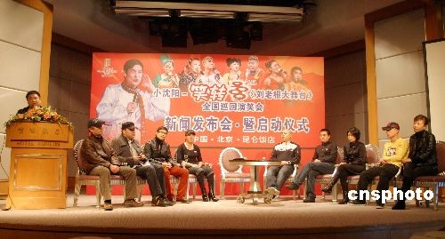 3月7日,“《劉老根大舞臺》小沈陽笑轉2009”全國巡演演笑會新聞發(fā)布會暨啟動儀式在北京昆侖飯店舉行。據(jù)了解,“《劉老根大舞臺》小沈陽笑轉2009”全國巡演演笑會自3月6日開始,全國巡回演出,共106場,主要演員全部是趙家班,小沈陽表示如沒有特殊情況,將參加全部演出。中新社發(fā) 龔輝 攝