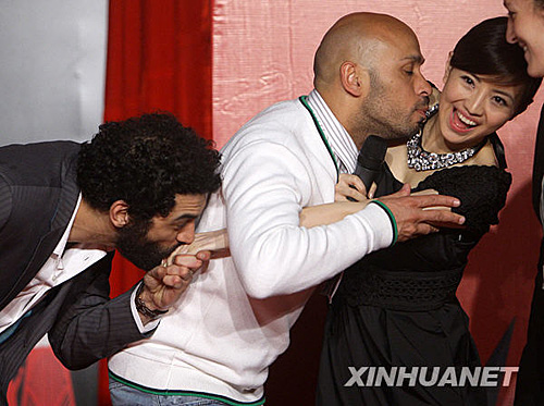 4月9日,法國(guó)電影《孤獨(dú)二兄弟》的導(dǎo)演兼主演、法國(guó)家喻戶(hù)曉的笑星組合朗茲·貝迪亞(左)和埃里克·朱多爾(中)在接受采訪(fǎng)時(shí)逗樂(lè)。當(dāng)日,由中國(guó)國(guó)家廣播電影電視總局、法國(guó)駐華大使館等單位共同主辦的“2009中法文化交流之春暨第六屆法國(guó)電影展映活動(dòng)”在北京開(kāi)幕,該活動(dòng)將向中國(guó)觀眾展現(xiàn)當(dāng)代法國(guó)藝術(shù)舞臺(tái)的活力和創(chuàng)造力,為中法兩國(guó)藝術(shù)家提供交流的機(jī)會(huì)。邢廣利 攝