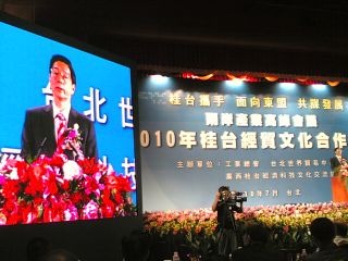 據(jù)報(bào)道,廣西團(tuán)來臺進(jìn)行經(jīng)貿(mào)文化交流,今日在圓山飯店舉行“2010年桂臺經(jīng)貿(mào)文化合作論壇”。郭聲琨表示,簽署ECFA是兩岸關(guān)系上的里程碑,有助于提升兩岸競爭力,因此,他希望兩岸未來能在產(chǎn)業(yè)、市場和文化上進(jìn)一步開拓和交流。