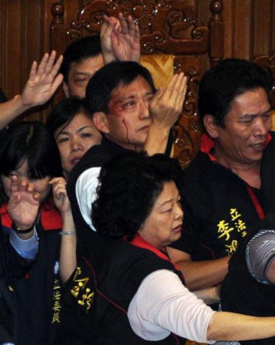 臺(tái)“立法院”臨時(shí)會(huì)今天審議ECFA(兩岸經(jīng)濟(jì)合作框架協(xié)議),由于民進(jìn)黨暴力阻撓表決,現(xiàn)場(chǎng)爆發(fā)肢體沖突,多名“立委”掛彩,混亂中通過(guò)將ECFA等案徑付二讀。