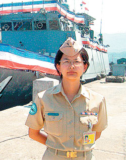 中新網(wǎng)7月12日電 據(jù)“中央社”報(bào)道,臺(tái)海軍2010年6月產(chǎn)生第二位女性艦長。1976年出生的林美菁因資歷完整、績效優(yōu)異,獲派任為“鄱江號(hào)”少校艦長。對(duì)于將在海上獨(dú)當(dāng)一面,她表示有十足信心勝任。
