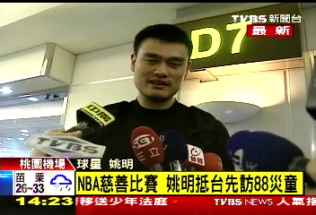 姚明這次來(lái)臺(tái)是參加“2010姚基金慈善之旅”的活動(dòng),不過(guò)一抵達(dá)臺(tái)灣,他將立刻搭乘高鐵,前往高雄和八八風(fēng)災(zāi)的受災(zāi)戶學(xué)童見面。
