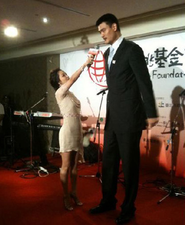 中新網(wǎng)7月28日電 據(jù)臺灣“今日新聞”報(bào)道,臺灣美女主播侯佩岑27日為姚明“姚基金慈善之旅”主持募款晚會,兩人因身高太懸殊,侯佩岑配合高舉話筒采訪姚明,她笑言畫面呈現(xiàn)就像爸爸帶著小孩一樣。