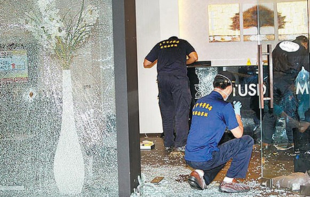 今年五月二十八日下午,“少年殺手”廖國(guó)豪闖入臺(tái)中角頭翁奇楠(四十歲)開(kāi)設(shè)的日月生物科技公司,近距離朝翁奇楠、賴(lài)榮振(三十九歲)連開(kāi)十八槍?zhuān)唐骈?dāng)場(chǎng)死亡、賴(lài)榮振就醫(yī)后不治,案發(fā)后曾查出有警員在場(chǎng)打麻將,昨日再傳現(xiàn)場(chǎng)彈殼與彈頭數(shù)量不符,引發(fā)現(xiàn)場(chǎng)遭破壞、在場(chǎng)警員開(kāi)槍的質(zhì)疑,但臺(tái)中市長(zhǎng)胡志強(qiáng)表示:“揣測(cè)的,未必是真的!