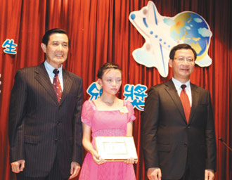 該獎項(xiàng)今年頒發(fā)新臺幣200萬元獎學(xué)金,共150位學(xué)生獲獎,由縣長吳志揚(yáng)主持,馬英九頒獎合照。