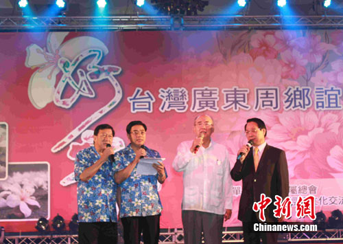 晚上,在新竹縣喜來登酒店大廳舉行的歡迎黃華華省長(zhǎng)一行到訪的“好客晚宴”上,黃華華與吳伯雄,以及新竹縣領(lǐng)導(dǎo)人邱鏡淳等一道登臺(tái)獻(xiàn)歌。