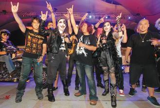 昨晚活動記者會,由春吶創(chuàng)辦人Wade所組、來自蘇格蘭的Aurora樂團開場,接著是由團員全化上嚇人尸妝的“搖滾臺中金屬魂”咆哮震撼登場,演唱由在地金屬10團共同創(chuàng)作的主題曲“搖滾臺中”。隆隆重金屬樂聲中,胡志強化身搖滾客、跨坐百萬哈雷摩托車現(xiàn)身。
