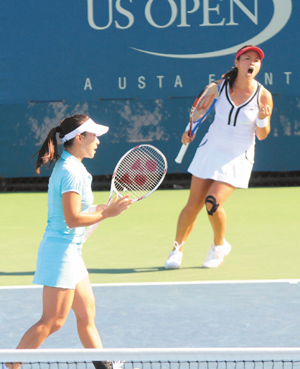 中新網(wǎng)9月9日電 臺灣《聯(lián)合報》今日報道說,“潔然配”的大陸鄭潔及臺灣詹詠然,昨天勇闖美國網(wǎng)球公開賽女雙四強,追平兩岸女雙組合在大滿貫賽最佳成績,繼續(xù)向前挺進。