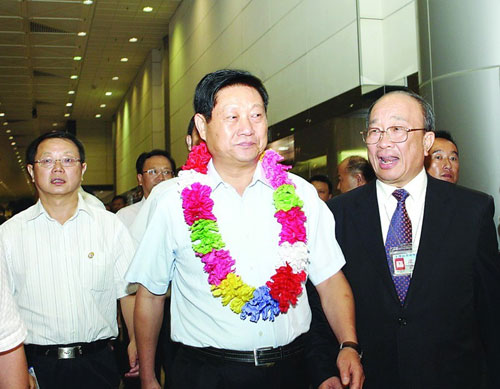 今晚(13日),隨著一架臺灣華航客機降落在臺北桃園機場,以代省長趙正永為團長、副省長景俊海為副團長的陜西省代表團抵達寶島臺灣,開始以“文化交流、認親拜友、科技聯(lián)盟”為主題的“2010臺灣陜西周”活動。臺北世界貿(mào)易中心秘書長趙永生、臺灣陜西同鄉(xiāng)會會長兼董事長王廣生和西安臺資企業(yè)協(xié)會會長孫芳山等率有關方面代表到機場迎接。