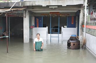 在隘寮溪沿岸的萬(wàn)丹鄉(xiāng),也因溪水溢流成了澤國(guó),“去年‘莫拉克’淹水也沒(méi)這次大!”鄉(xiāng)長(zhǎng)郭寶聯(lián)說(shuō),這次興化部落全村水深高過(guò)一層樓,以往從來(lái)沒(méi)有過(guò);還有甘棠村從未淹水,這次也躲不過(guò),警消救出上百名受困民眾。