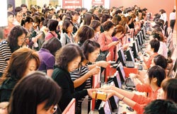 中新網(wǎng)10月8日電 據(jù)臺(tái)灣《中國(guó)時(shí)報(bào)》報(bào)道,經(jīng)濟(jì)景氣回春創(chuàng)新高,臺(tái)灣人生猛的消費(fèi)力也回來(lái)了!七日新開(kāi)幕的統(tǒng)一臺(tái)北阪急百貨,開(kāi)幕首日涌進(jìn)十五萬(wàn)人潮,單日業(yè)績(jī)突破億元目標(biāo)!同日展開(kāi)周年慶的天母大葉高島屋百貨,首日業(yè)績(jī)也沖到一億三千萬(wàn)元,創(chuàng)下大葉高島屋開(kāi)幕十六年來(lái)單日最高營(yíng)收紀(jì)錄。
