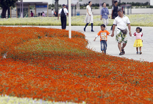 中新網(wǎng)10月19日電 據(jù)臺(tái)灣《中華日?qǐng)?bào)》報(bào)道,臺(tái)北花博會(huì)第二階段測(cè)試昨天因逢禮拜一,三個(gè)園區(qū)共有近兩萬人次參觀,夢(mèng)想館與夢(mèng)想劇場(chǎng)最少需排隊(duì)三十分鐘才能進(jìn)入,其余展館則動(dòng)線都順暢。