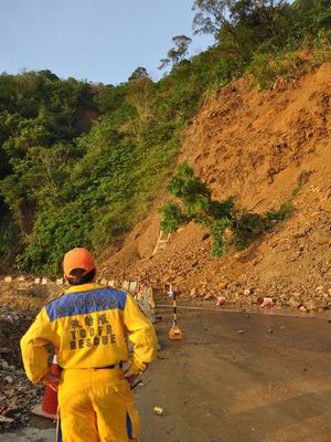 中新網(wǎng)10月25日電 蘇花公路106公里處再度坍塌,今天早上7點15分,公路局派出“怪手”和推土機,工程人員全力搶通,已恢復(fù)通車。