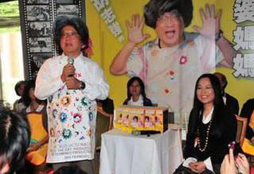 中新網(wǎng)10月29日電 據(jù)臺(tái)灣“今日新聞網(wǎng)”報(bào)道,臺(tái)中市長(zhǎng)胡志強(qiáng)28日頭戴花白假發(fā),變身“胡奶奶”,發(fā)表新書(shū)《婆婆媽媽臺(tái)中經(jīng)》。他表示,臺(tái)中市就像個(gè)大家庭,主政9年來(lái),他是以家中婆婆媽媽心情料理市政。想的是如何把市政做好,讓市民感到幸福而常常歡笑。