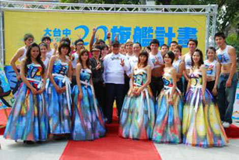 中新網(wǎng)11月10日電 據(jù)臺灣“中廣新聞”報道,國民黨臺中市長參選人胡志強,10日在臺中公園湖心亭畔,以展秀方式,發(fā)表二十大旗艦計劃,宣示要為大臺中開創(chuàng)美好未來。特別的是,這些計劃透過設(shè)計師巧手,化成美麗畫作,還拓印成秀服,在激烈的選戰(zhàn)中,多了一點創(chuàng)意與藝文味,相當(dāng)吸睛。