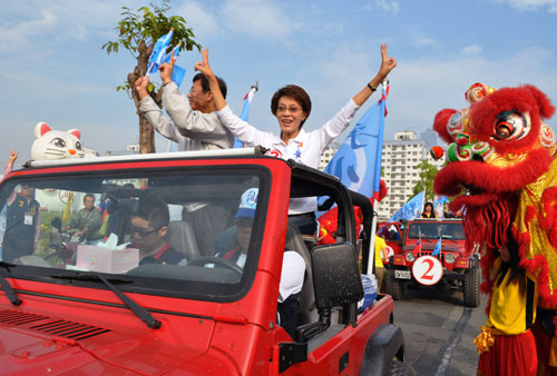 中新網(wǎng)11月12日電 據(jù)臺灣“中廣新聞”報道,臺灣“五都”選舉開跑第一天,國民黨高雄市長候選人黃昭順12日早8點就帶著競選團隊上香祈福,隨后展開車隊游行掃街拜票。針對龍?zhí)顿彽匕概袥Q陳水扁有罪定讞,黃昭順說這讓大家對司法重拾信心,并稱高雄都的選舉一定會“棄!保沂菞壺澑,保清廉,棄蕭條,保經(jīng)濟。