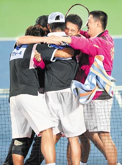 由于中華臺北代表團在一九九○和二○○八年先后在北京舉行的亞運、奧運會,都以零金作收,此次亞運再次前來對岸參賽,不免令人憂心,代表團可不要患了“奪金恐懼癥”。昨天中華臺北軟式網(wǎng)球男子隊的這一金,突破了在大陸參賽的“零金障礙”。