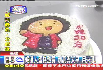 甜點(diǎn)師傅說,這些蛋糕全都客制化服務(wù),要支持還是發(fā)泄,全都可以依照顧客喜好來更改,比起一般的蛋糕,這些砸派比較便宜,8吋300元,還能邊砸邊吃,不過最近賣最好的就是楊淑君的蛋糕,至于候選人公仔蛋糕,訂單也不少,一個(gè)禮拜至少也有3到4顆,看來從蛋糕銷售量,真的也能反映時(shí)事。
