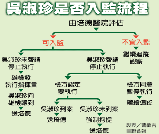 高雄檢方昨天進行沙盤推演,如果評估可以入監(jiān)服刑,傳票最快在本月下旬發(fā)出,但最棘手的情況是吳淑珍屢傳不到,檢方必須執(zhí)行拘提。