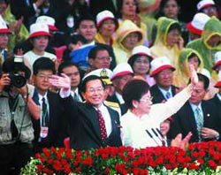 一九九四年,陳水扁在初選中擊敗謝長廷,參選第一次開放直選的臺北市長。不可否認,悲情,尤其是吳淑珍所代表的受難形象,在“謝下陳上”變化中,扮演了相當重要的角色。然而一反眾人預期,正式選戰(zhàn)中,陳水扁卻轉而打出“快樂、希望”的口號,并成功坐上市長寶座,創(chuàng)造了另一項奇跡。