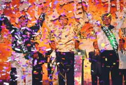 然后二○○四年“大選”來了,國民黨早早進行“連宋合”的團結,看來似乎又要重演一九九八年臺北市長選舉的戲碼。居于劣勢,陳水扁使出全力,在投票前夕神奇地發(fā)生了“兩顆子彈”的事件,讓他在“大選”中以兩萬票的差距險勝。除了“奇跡”,還能如何稱呼這樣的轉折變化呢?