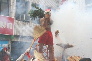 其中的重頭戲炮炸寒單爺,今年一共安排了十四場(chǎng)次的定點(diǎn)表演。第一次看表演的民眾覺得是既恐布又過(guò)癮。